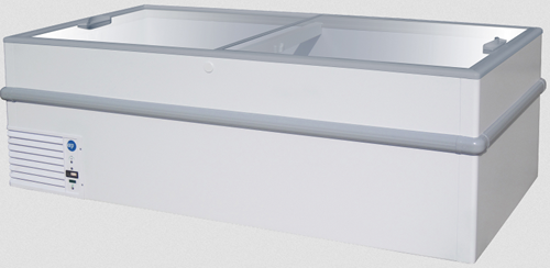Stella chest freezer by Iarp is suitable for the display of all types of frozen food products complete with low sliding glass lids.