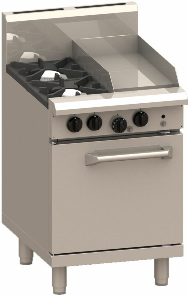 - Concealed 24mj oven burner with mild steel sole plate for even heat distribution